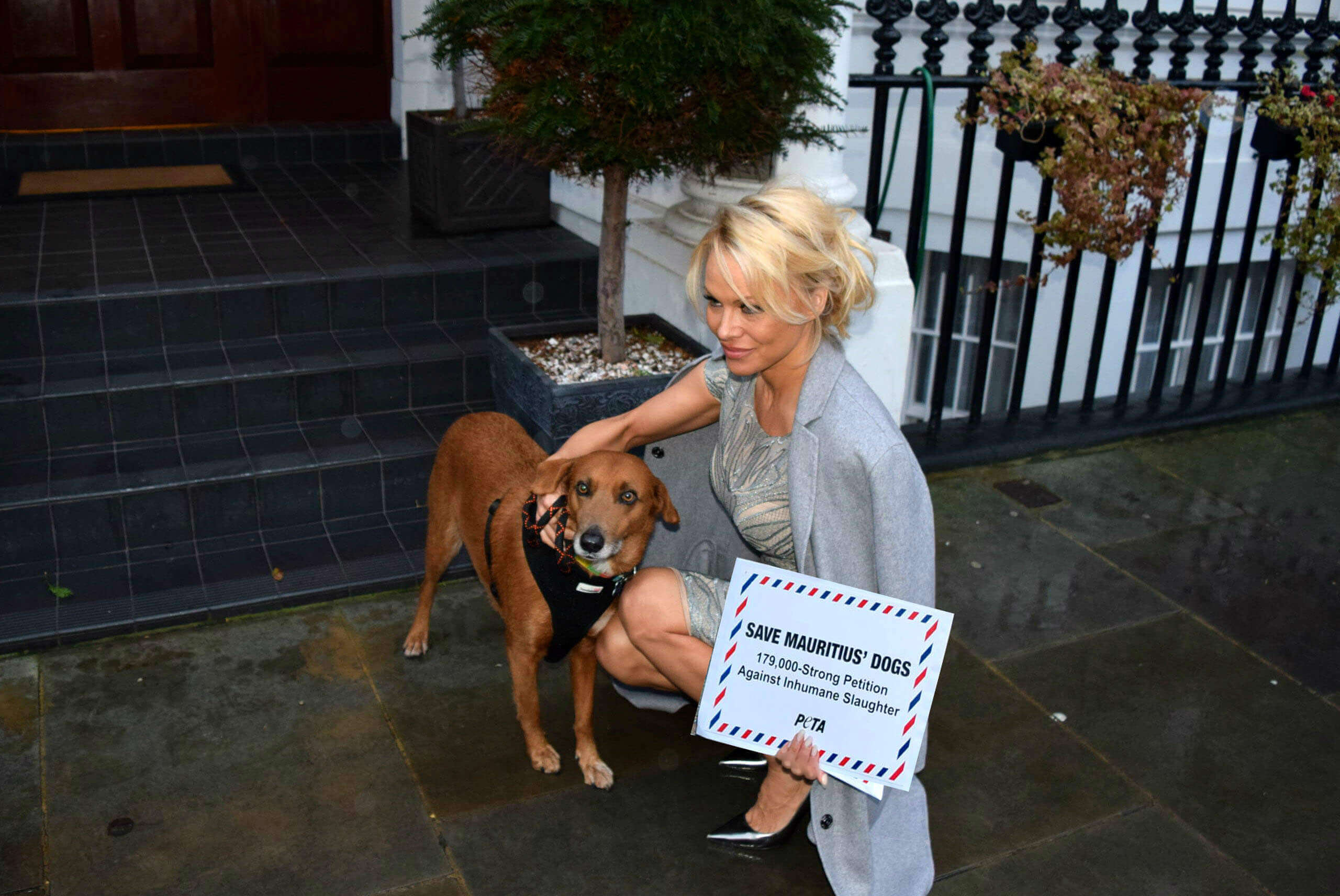 Na op de hoogte gesteld te zijn over de schaamtevolle manier van doden van honden op Mauritius, heeft dierenrechtenactiviste Pamela Anderson – samen met geredde hond Zorro – eigenhandig een petitie ingeleverd bij de Hogere Commissie van Mauritius in Londen.