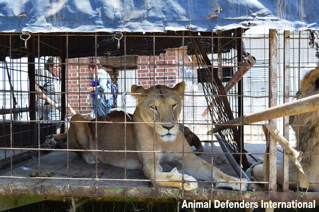 Sasha’s former life could be described in one word — miserable. She and two other lions, Nena and Kimba, had spent 10 years locked up in tiny wire cages, only being let out to perform for Circo Navarro, the Guatemalan circus company that owned them. But after each performance, the lions were shoved back into their barren cages.